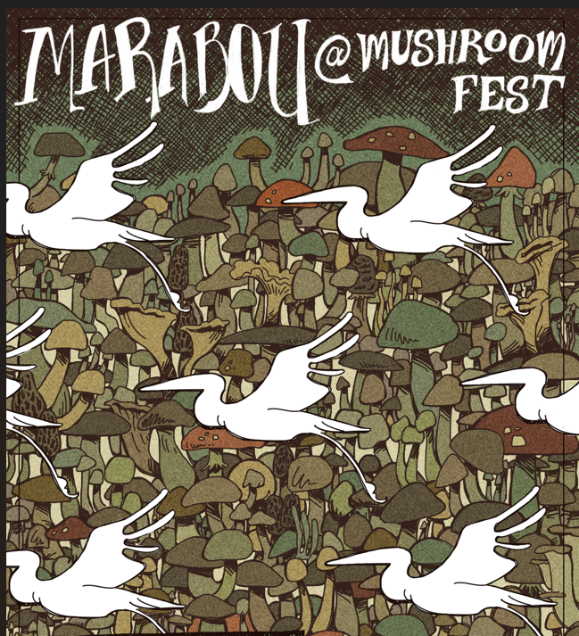 There will be raffle tickets sold for a 108 pound painted mushroom by our local artist Jane Henry, raffle will be pulled Sunday @ 4PM.