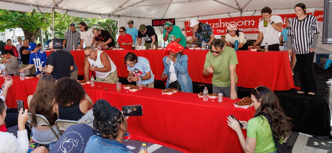 This is a professional and amateur event, which puts the FUN in FUNGI when a group of brave contestants see how many fried mushrooms they can eat in 12 minutes!